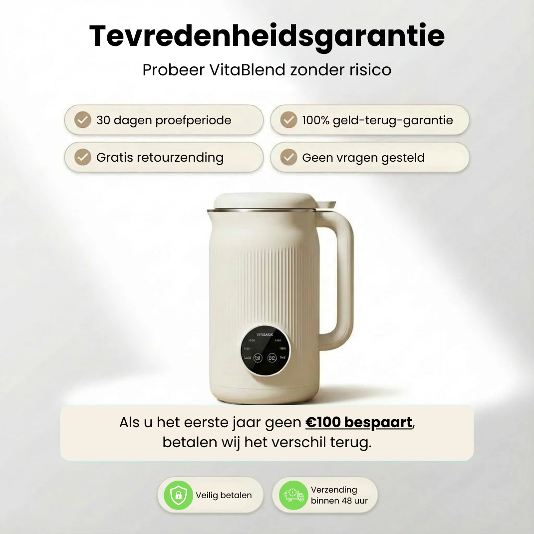 VitaBlend wordt geleverd met een 30 dagen tevredenheidsgarantie.